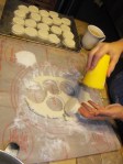 Using 2 1/2 inch round cutter cut dough. Re roll as necessary.